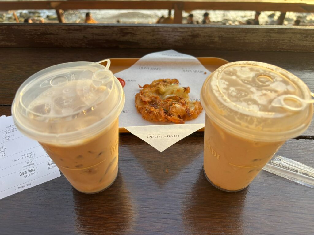 Kopi Djaya Abadi worth it banget buat dicoba, terutama buat kamu yang mau sunrise-an sambil ngopi cantik. Saran aku, datanglah sekitar jam 05.45 – 06.00 WITA supaya dapat posisi duduk terbaik untuk melihat matahari terbit.