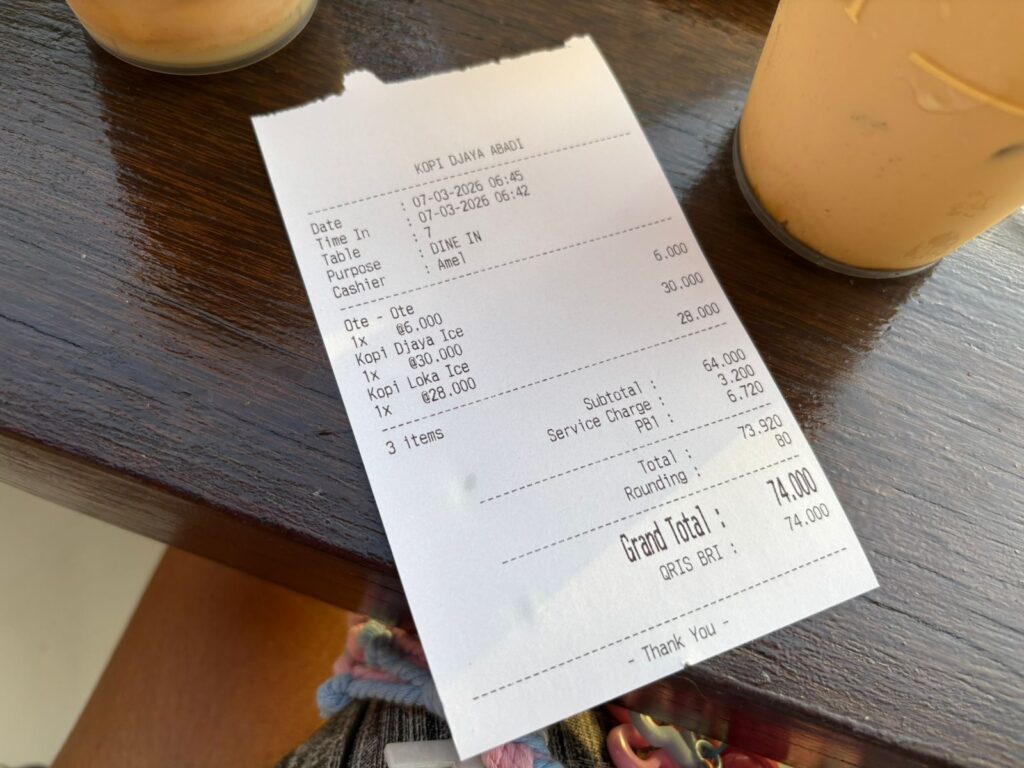 Range harga minumannya berkisar Rp25.000 – Rp35.000, sementara snack mulai dari Rp5.000 saja.